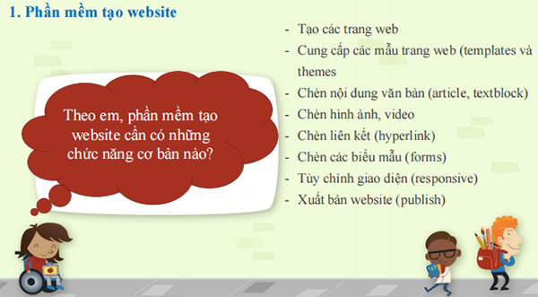 - Chỉ ra được một số chức năng cơ bản của phần mềm tạo website.