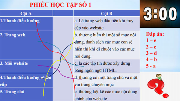 Chia lớp thành các nhóm: 2 bạn/nhóm để trả lời nhanh phiếu học tập.