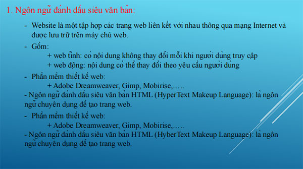 − Tạo được một trang web đơn giản bằng ngôn ngữ đánh dấu siêu văn bản.