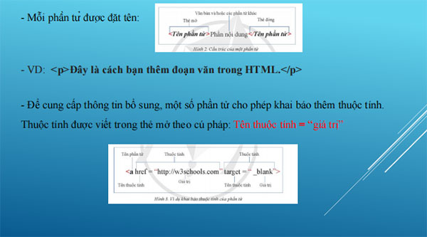 − Nhận biết được một số khái niệm chính của ngôn ngữ đánh dấu siêu văn bản: phần tử, thẻ mở, thẻ đóng.