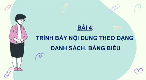 BÀI 4: TRÌNH BÀY NỘI DUNG THEO DẠNG DANH SÁCH, BẢNG BIỂU