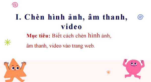 a. Mục tiêu: HS biết chèn hình ảnh, âm thanh, video vào trang web.