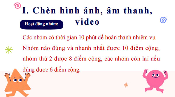 Hoạt động 1: Chèn hình ảnh, chèn âm thanh, chèn video.