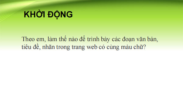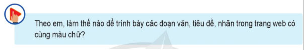 - Kiến thức: Trình bày các đoạn văn, tiêu đề , nhãn trong trang web có cùng màu chữ