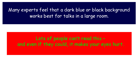 - Giáo viên đưa ra một số ví dụ về sử dụng màu sắc trên trang chiếu, sự phối hợp giữa màu nền và màu sắc trên trang chiếu: