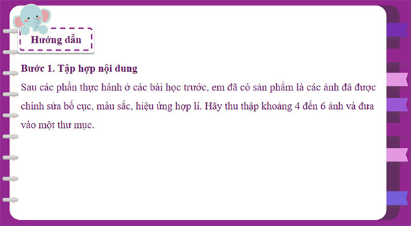 - GV giao nhiệm vụ cho các nhóm, đặc biệt lưu ý cho HS tập hợp tư liệu là các tệp ảnh đã chỉnh sửa, được tạo ra bởi các bài học trước.