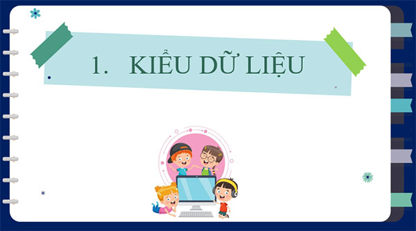 + Trong các ngôn ngữ lập trình, dữ liệu được phân loại thành những kiểu khác nhau Số được phân loại thành kiểu số nguyên hoặc số thực, văn bản được phân loại thành kiểu kí tự hoặc xâu kí tự, các điều kiện hay các phép so sánh được phân loại thành kiểu lôgic,…
