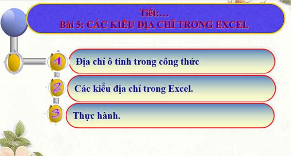 BÀI 5. CÁC KIỂU ĐỊA CHỈ TRONG EXCEL