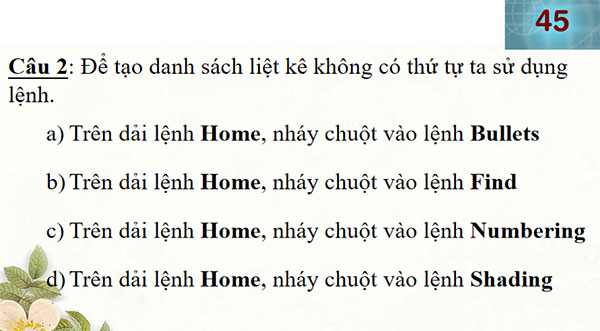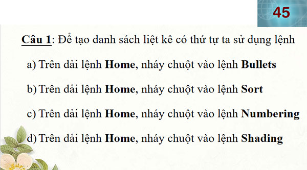 BÀI 4. THỰC HÀNH TẠO DANH SÁCH LIỆT KÊ VÀ TIÊU ĐỀ TRANG