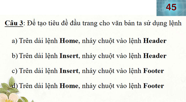 - Thực hiện được việc tạo tiêu đề đầu trang, tiêu đề chân trang và cách đánh số trang.