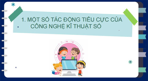 - Trình bày được một số tác động tiêu cực của công nghệ kĩ thuật số đối với đời sống con người và xã hội, nêu được ví dụ minh hoạ.