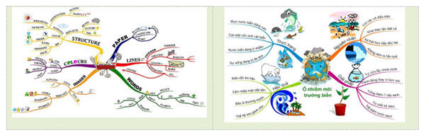 - GV trình chiếu cho HS xem một số hình ảnh về sơ đồ tư duy, sau đó yêu cầu HS thảo luận theo nhóm 3 – 4 HS và trả lời câu hỏi: “Theo em, việc sử dụng sơ đồ tư duy khi trình bày thông tin mang lại những lợi ích gì?”.
