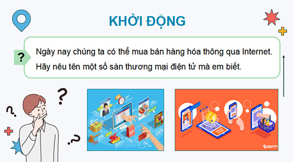 - GV mời đại diện 1 HS trả lời câu hỏi: Gợi ý đáp án: Ngày nay chúng ta có thể mua bán hàng hóa thông qua Internet như mua bán trên Shopee, Lazada, Tiki, TikTok, ...