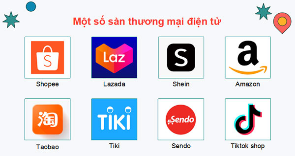 GV đặt câu hỏi: Ngày nay chúng ta có thể mua bán hàng hóa thông qua Internet. Hãy nêu tên một số sàn thương mại điện tử mà em biết.