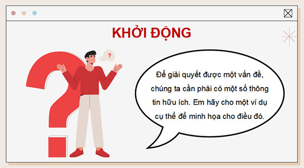 Để giải quyết được một vấn đề, chúng ta cần phải có một số thông tin hữu ích. Em hãy cho một ví dụ cụ thể để minh họa cho điều đó.