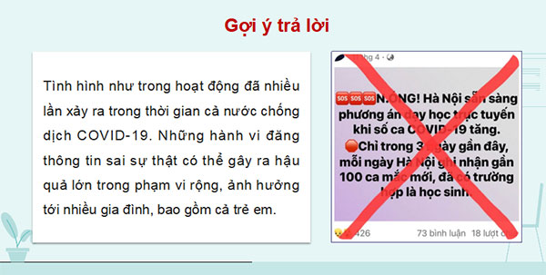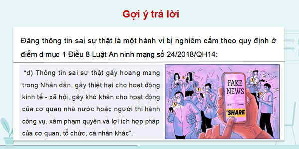 Gợi ý: Hành vi loan tin sai sự thật trên mạng xã hội là có vi phạm pháp luật.