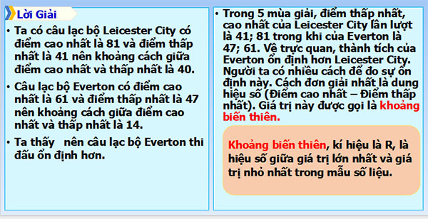 - Tính được số đặc trưng đo mức độ phân tán cho mẫu số liệu không ghép nhóm: khoảng biến thiên, khoảng tứ phân vị, phương sai, độ lệch chuẩn.