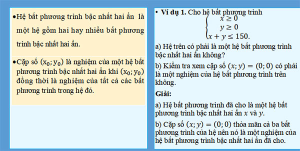 - Nhận biết hệ bất phương trình bậc nhất hai ẩn.