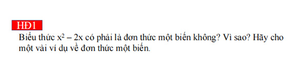 - HS tìm hiểu nội dung kiến thức về đơn thức theo yêu cầu, dẫn dắt của GV, thảo luận trả lời câu hỏi trong SGK.