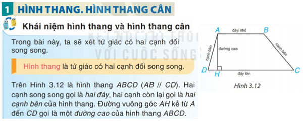 - Mô tả khái niệm hình thang, hình thang cân và các yếu tố của chúng.