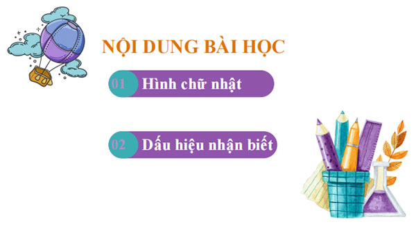 - Giải thích được hình chữ nhật có hai đường chéo bằng nhau.