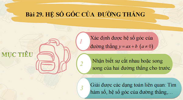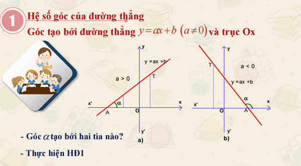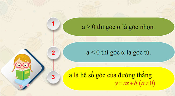 - Xác định được hệ số góc của đường thẳng liên quan mật thiết với góc tạo bởi đường thẳng đó và trục Ox.
