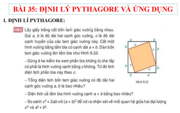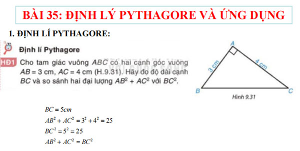 BÀI 35: ĐỊNH LÍ PYTHAGORE VÀ ỨNG DỤNG