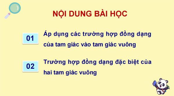 - Học sinh giải thích được các trường hợp đồng dạng của tam giác vuông