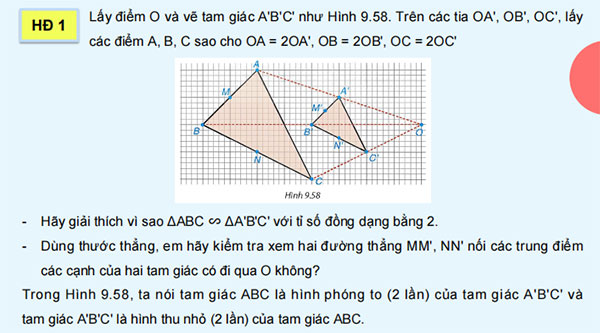 - Năng lực sử dụng công cụ và phương tiện học toán: Vẽ được hình đồng dạng phối cảnh của tam giác và đoạn thẳng khi biết tỉ số đồng dạng.
