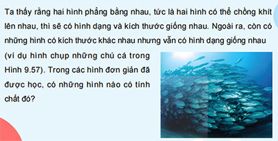 b) Nội dung: Yêu cầu HS quan sát hình 9.57 và nhận xét hình dạng, kích thước của các chú cá trong hình.