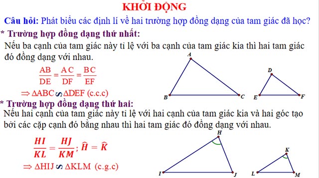 b) Nội dung: Thực hiện các câu hỏi liên quan đến hai trường hợp đồng dạng đã học.