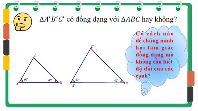 - Học sinh giải thích được trường hợp đồng dạng góc- góc của hai tam giác.