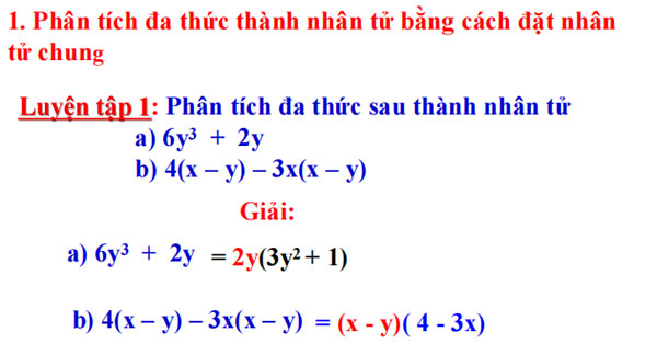 1. Phân tích đa thức thành nhân tử bằng cách đặt nhân tử chung