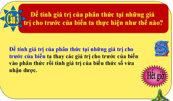 + Tính được giá trị của phân thức tại một giá trị đã cho của biến.