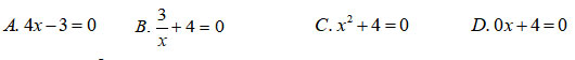 Câu 1: Trong các phương trình sau, đâu là phương trình bậc nhất một ẩn?
