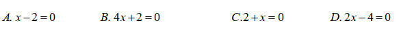 Câu 2: x = là nghiệm của phương trình nào sau đây?