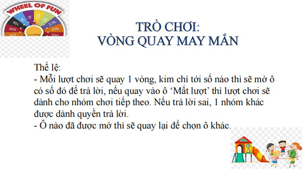 b) Nội dung: HS chơi trò chơi ‘Vòng quay may mắn’.
