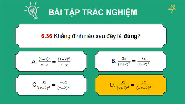 Bài 6.36 - D Bài 6.37 - C Bài 6.38 - D Bài 6.39 - B Bài 6.40 - A |