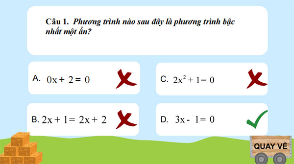 - Năng lực giao tiếp toán học: Học sinh nhận biết được thế nào là phương trình bậc nhất một ẩn và cách giải, học sinh biết cách giải bài toán bằng cách lập phương trình, học sinh nhận biết được hàm số bậc nhất và cách vẽ đồ thị của hàm số bậc nhất.