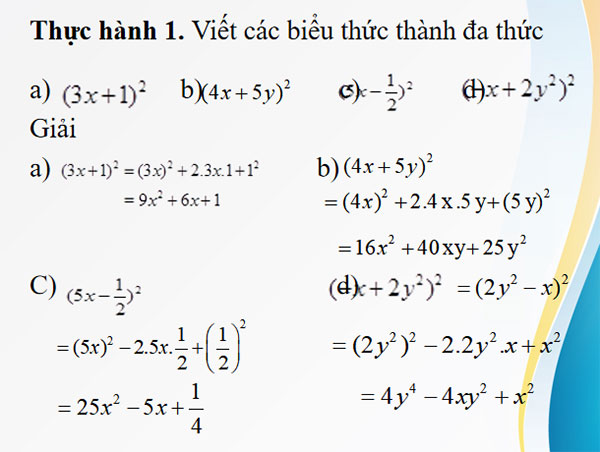 Thực hành 1. Viết các biểu thức thành đa thức