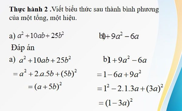 - Vận dụng được các hằng đẳng thức để phân tích đa thức thành nhân tử ở dạng: vận dụng trực tiếp hằng đẳng thức;