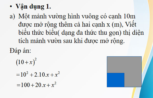 Bước 4: Kết luận, nhận định: GV trên cơ sở đó dẫn dắt HS vào bài học mới: “Bài 3: Hằng đẳng thức đáng nhớ.”