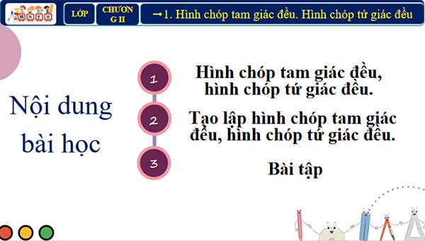 – Tạo lập được hình chóp tam giác đều, hình chóp tứ giác đều.
