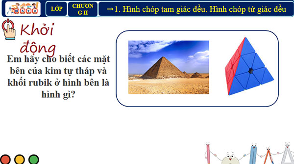 - HS quan sát xem các mặt bên của kim tự tháp và khối rubik là hình gì.