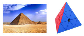 - Các mặt bên của kim tự tháp và khối rubik là hình tam giác cân.