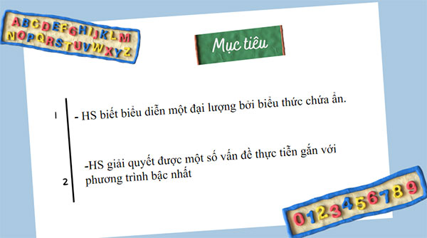 - Biểu diễn một đại lượng bởi biểu thức chứa ẩn.