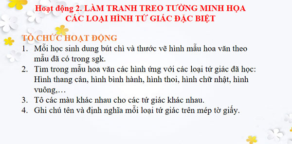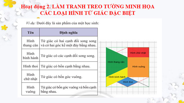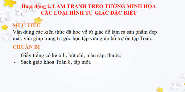 PowerPoint Toán 8 Hoạt động 2: Làm tranh treo tường minh họa các loại hình tứ giác đặc biệt