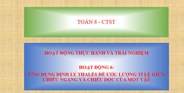 HOẠT ĐỘNG 6: ỨNG DỤNG ĐỊNH LÝ THALÈS ĐỂ ƯỚC LƯỢNG TỈ LỆ GIỮA CHIỀU NGANG VÀ CHIỀU DỌC CỦA MỘT VẬT