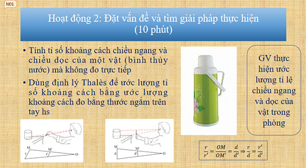 - Vận dụng đinh lý Thalès để xác định tỉ lệ giữa chiều ngang và chiều dọc của một vật ở xa.