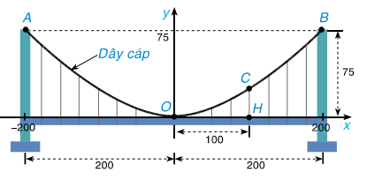 - Đặt vấn đề: Sau khi học sinh trả lời, GV có thể gợi vấn đề như sau: Muốn tìm chiều cao của dây cáp, ta cần tìm tọa độ điểm C. Từ đó dẫn đến nhu cầu tìm hiểu các tính chất của hàm số y = ax2.